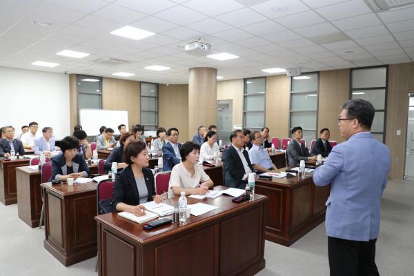 최근 서울 강서구의회가 양일간의 일정으로 구의회 의원들의 의정활동 역량강화를 위한 ‘의원 아카데미’를 개최했다. 사진은 의원 아카데미에 참석한 구의원들이 초빙 강사의 교육을 청강하고 있는 모습.(사진제공=강서구의회)