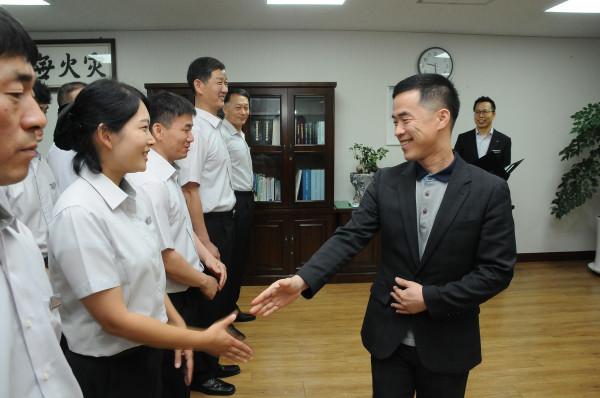 동작소방서는 10일 오전 9시 서장실 및 각 과 사무실에서 신규임용 및 전입자등 인사발령자 56명에 대한 환영의 시간을 가졌다. 사진은 오정일 서장이 전입 및 신규 임용된 직원들과 인사를 나누는 모습. (사진제공=동작소방서)