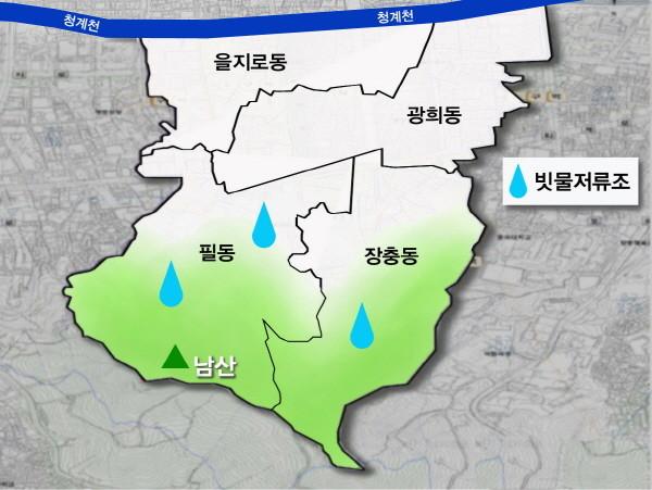 '필동배수분구 하수관로 종합정비' 사업은 1998년과 2001년, 2010년에 침수 이력이 있는 명동, 필동, 광희동, 을지로동 일대가 기습폭우에도 견디도록 하수관로를 대대적으로 보강하는 일이다.