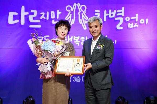 경기 오산시는 지난 10일 시청 대회의실에서 곽상욱 시장과 장인수 시의장을 비롯한 지역주민들이 참석한 가운데 ‘제23회 양성평등주간 기념행사’를 개최했다. 사진은 곽 시장이 양성평등 유공자에게 표창을 수여한 후 기념촬영을 하는 모습. (사진제공=오산시청)