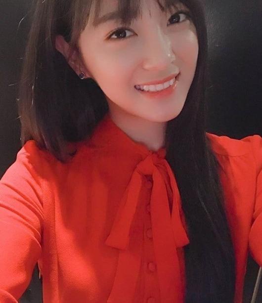 공개된 사진에서 세정은 빨간색 리본 원피스를 입고 셀카를 촬영하는 모습. 세정의 매력적인 눈웃음이 시선을 사로잡는다.