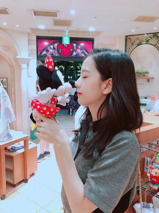 최근 블랙핑크 지수는 자신의 인스타그램에 "#かわいい (귀여워)"라는 글과 함께 사진을 게재했다. 공개된 사진 속에는 미니마우스 캐릭터 인형을 들고 사진을 찍은 지수가 담겼다.