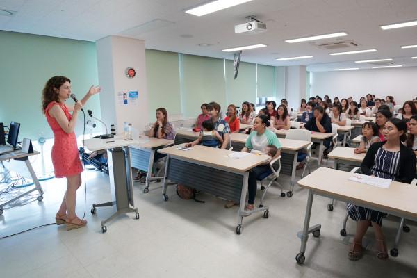 동대문구는 최근 동대문다사랑행복센터에서 ‘2018 동대문 다문화 아카데미’의 첫번째 프로그램인 ‘명사특강’을 진행했다. 사진은 이탈리아 출신 방송인 크리스티나 콘팔로니에리가 결혼이민자들에게 자신의 한국생활 적응기에 대해 강연하는 모습. (사진제공=동대문구청)
