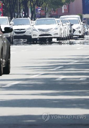 찜통더위가 이어진 16일 오후 대구시 북구 한 도로에 지열로 아지랑이가 피어오르고 있다.