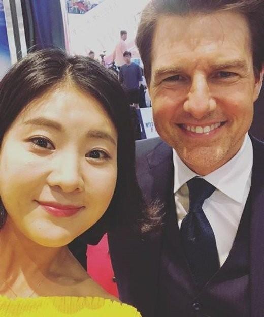 강유미는 16일 자신의 SNS에 "#미션임파서블:폴아웃 #missionimpossiblefallout #tomcruise#강유미#왁스뮤지엄아님! #7월25일대개봉 #씨네한수 #강유미의무비밀당"이라는 문구와 함께 투샷을 게재했다.
