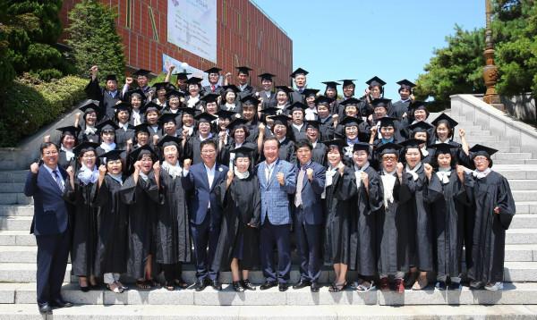 인천 미추홀구는 16일 인천대학교 부설 평생교육원에서 ‘2018년 제1·2기 지역사회 복지리더 양성과정 수료식’을 열었다. 행사에는 김정식 구청장을 비롯해 수료생 등 100여명이 참석했다. 사진은 참여자들이 기념촬영을 하는 모습. (사진제공=미추홀구청)