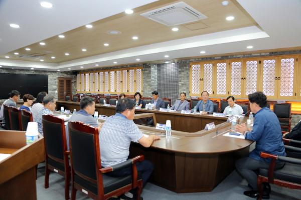 김광철 경기 연천군수가 최근 본관 상황실에서 민선7기 연천군수직 인수위원회 위원들과 함께 간담회를 실시했다. 사진은 김 군수와 인수위 위원 등 관계자들이 참석한 가운데 회의가 진행되고 있는 모습. (사진제공=연천군청)