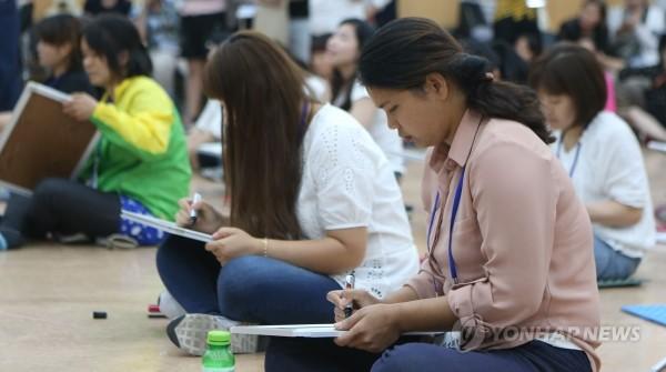 17일 오후 경남 창원시 경남농협에서 열린 '다문화가족과 함께하는 우리말 도전! 골든벨'에서 참가자들이 정답을 적고 있다.