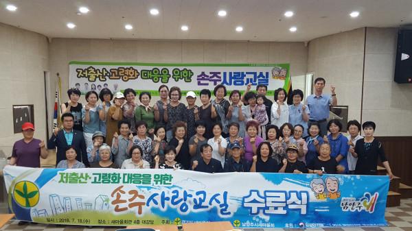 | ▲ ‘손주사랑교실’을 수료한 참가자들이 기념촬영을 하고 있다. (사진제공=남양주시청) | ||
