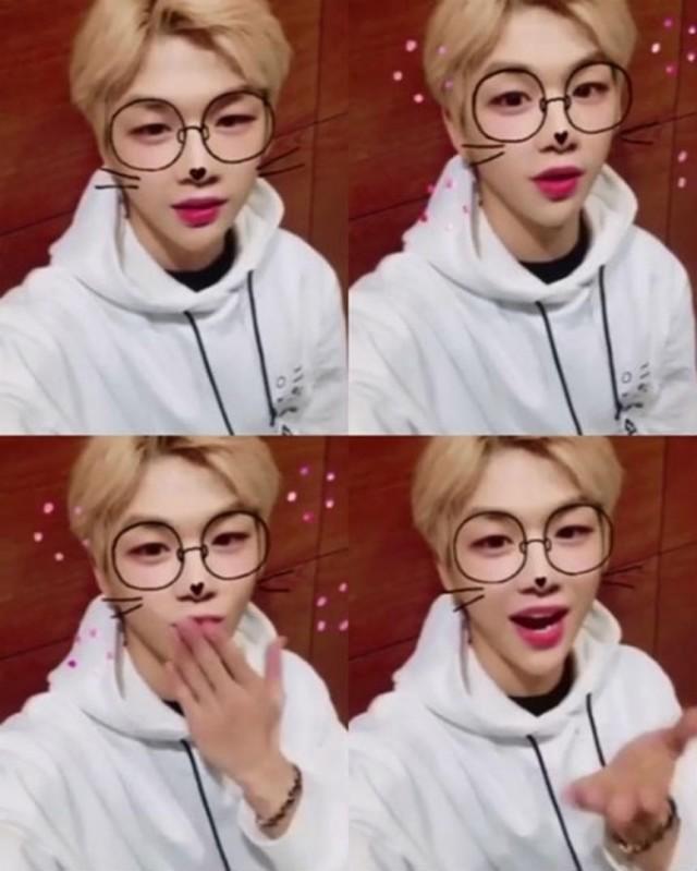 올라온 사진 속 강다니엘은 카메라를 바라보며 애교 넘치는 표정으로 사진을 찍고 있다.