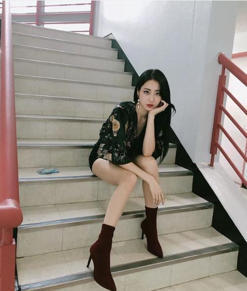 경리는 22일 오후 자신의 SNS에 계단에 앉아서 휴식을 취하는 사진을 공개했다.