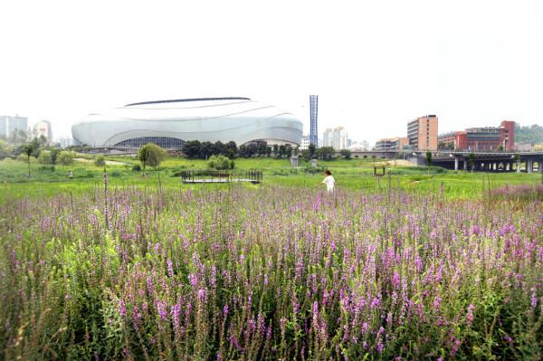 24일 구에 따르면 안양천 명소화 사업은 구일역 인근 고척돔 건너편 둔치에 총면적 9800㎡ 규모로 진행된 것으로, 주민 쉼터와 더불어 그라스원(grass garden), 왕꽃 창포원, 계절꽃밭 등이 조성됐다.