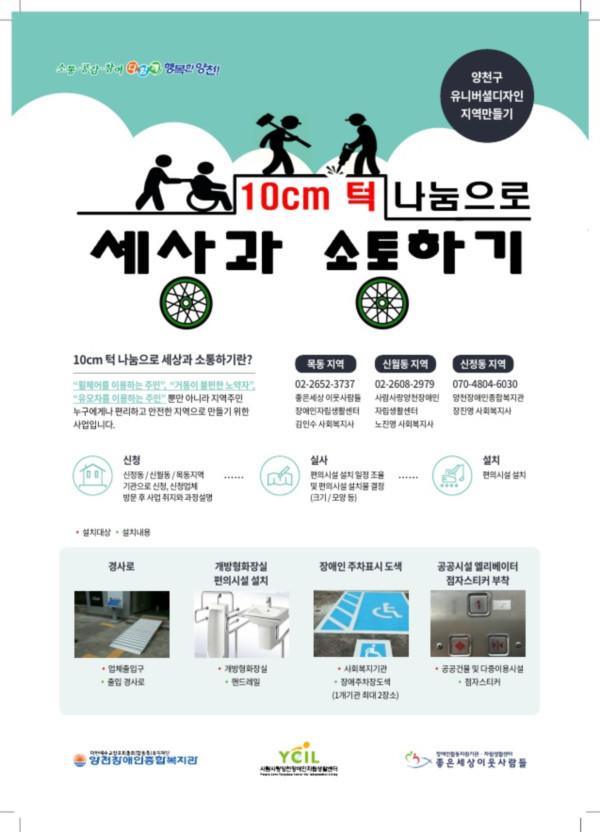 [시민일보=이대우 기자] 서울 양천구(구청장 김수영)가 오는 11월30일까지 ‘10cm 턱나눔으로 세상과 소통하기’ 사업 참여 신청을 받는다.
