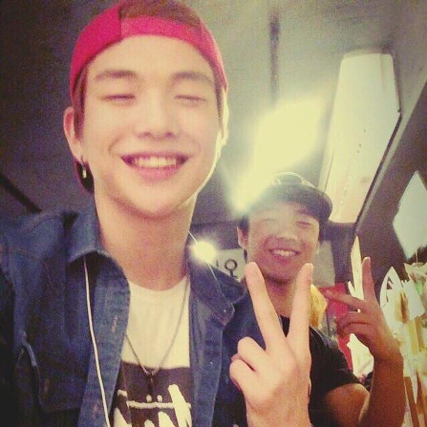 올라온 사진 속 강다니엘은 빨간 모자를 거꾸로 쓰고 브이를 하며 환하게 웃고 있는 모습이다.