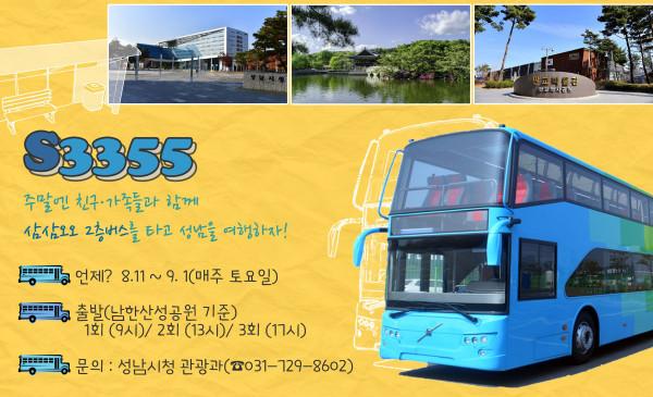 버스 번호는 ‘S3355번’(평일 4000번)으로, 성남시의 영문 이니셜 앞글자 ‘S’와 삼삼오오 모여 성남을 여행한다는 의미를 결합한 번호다.