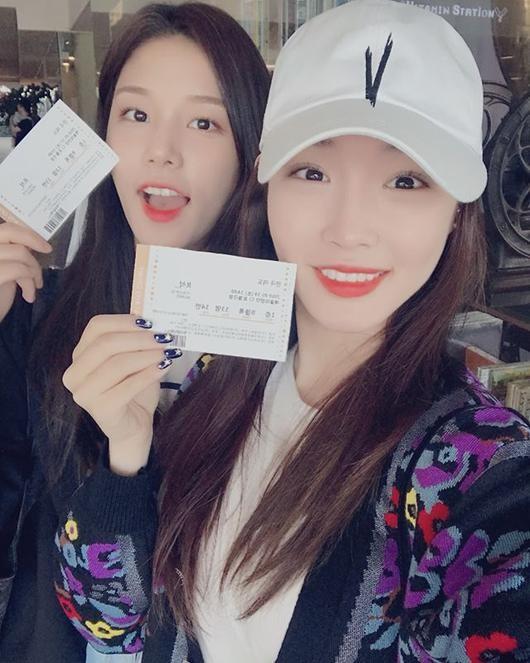 과거 라붐 솔빈은 솔빈은 '프로듀스 101 시즌2' 출신 청하와 함께 연극 '여도'를 보러가 티켓을 든 채 인증샷을 남겼다.