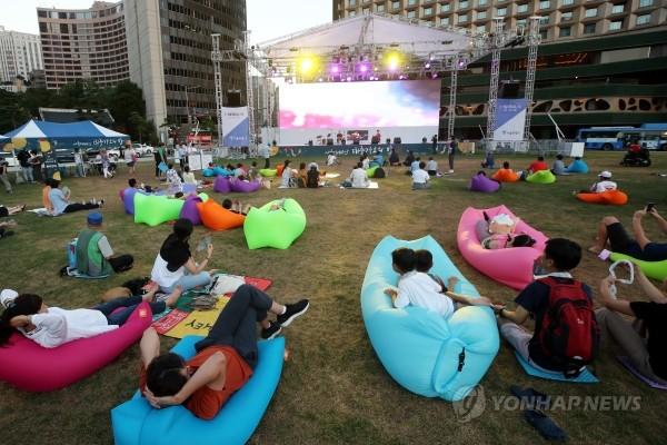 30일 오후 서울광장에서 열린 '서울 미래유산 대중가요의 밤' 행사를 찾은 시민들이 인디밴드 파스톤의 공연을 즐기고 있다.