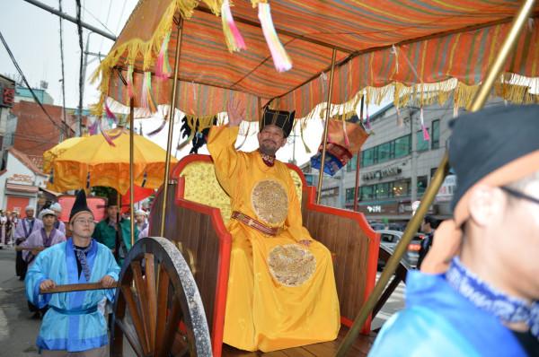 인천 강화군이 최근 강화읍 일원에서 '고려건국 1100주년'을 맞아 개최한 ‘고려문화축전’ 행사가 성황리에 막을 내렸다. 사진은 고려의상을 입고 행렬하는 유천호 군수의 모습. (사진제공=강화군청)