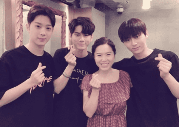 사진 속 김지선은 워너원 라이관린, 옹성우, 황민현 옆에서 손하트를 그리며 밝게 웃고 있다. 특히 워너원 멤버들은 검은색 티셔츠를 입고 훈훈한 비주얼을 뽐내 눈길을 끈다.
