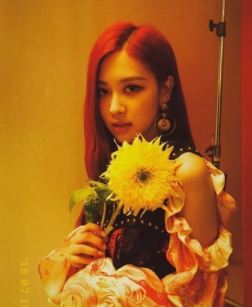사진 속 로제는 화려한 무늬의 오프숄더 원피스를 입고 큰 귀걸이를 매치했다. 레드 컬러의 헤어와 불그스름한 필터가 어우러져 몽환적인 분위기를 자아낸다. 로제의 눈빛은 보는 사람으로 하여금 홀릴 것 같은 기분이 들게 한다.