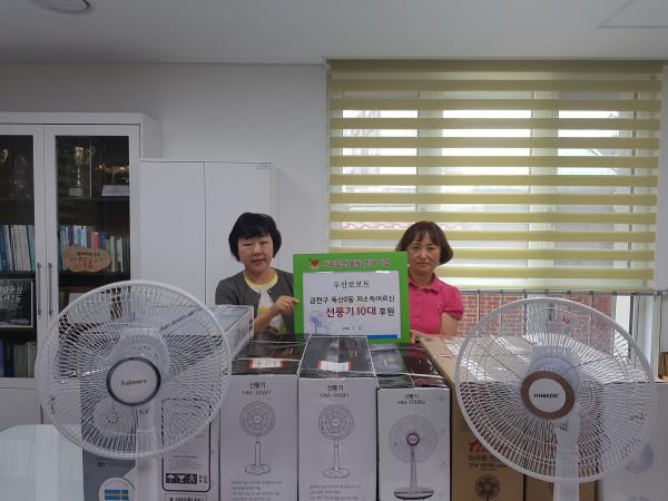 금천구는 최근 생산용 로봇 도소매업체 두산로보트 주식회사로부터 지역내 저소득 노인들을 위한 여름 계절용품을 지원받았다. 두산로보트(주)는 노인들을 위해 현금 110만원 상당의 선풍기 10대와 에어컨 1대를 기부했다. 사진은 관계자들이 기념촬영을 하는 모습. (사진제공=금천구청)