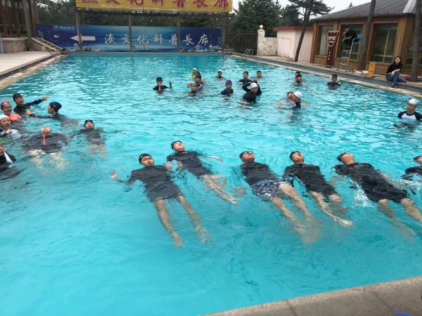 경기 평택시와 평택시청소년재단이 지역내 청소년들을 대상으로 실시한 ‘2018 평택시청소년 국제해양캠프’ 1회차를 무사히 마쳤다. 이 캠프는 오는 18일까지 총 4회에 걸쳐 진행된다. 사진은 생존수영을 배우고 있는 청소년들의 모습. (사진제공=평택시청)
