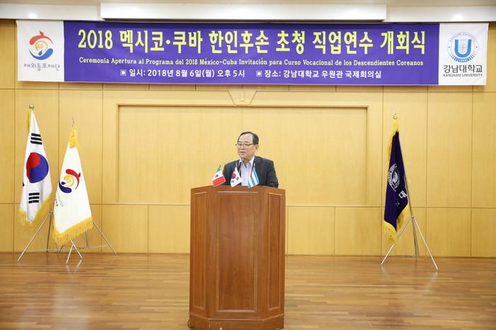 [용인=오왕석 기자]강남대학교는 지난 6일 오후 5시 외교부 산하 재외동포재단이 주최하고 강남대학교가 주관하는 ‘2018 멕시코·쿠바 한인후손 초청 직업연수 개회식’을 가졌다.