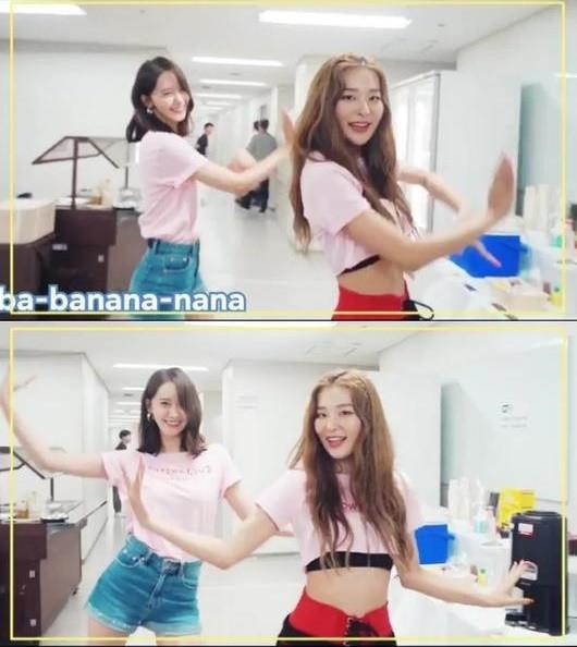 레드벨벳 공식 "파도 춤 소녀시대 윤아. 레드벨벳 나왔잖아 '파워 업' 보러 가자. 파도 타고 가다 아기 상어 만난 춤"이라는 글과 함께 영상이 올라왔다. 공개된 영상에는 윤아와 슬기가 춤을 추는 모습이 담겼다.