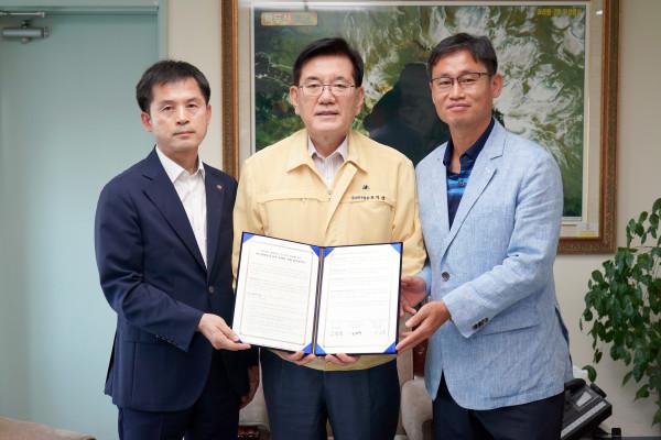동대문구는 8일 구청에서 한국가스안전공사 서울동부지사, 예스코 고객센터 협의회와 ‘가스안전분야 민간 일자리창출 업무협약’을 체결했다. 사진은 유덕열 구청장(가운데)과 윤탁영 한국가스안전공사 서울동부지사장, 전오원 예스코 고객센터협의회 회장이 기념촬영을 하는 모습. (사진제공=동대문구청)