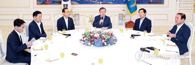 문재인 대통령이 16일 낮 청와대에서 열린 여야 5당 원내대표 초청 오찬에서 인사말을 하고 있다.