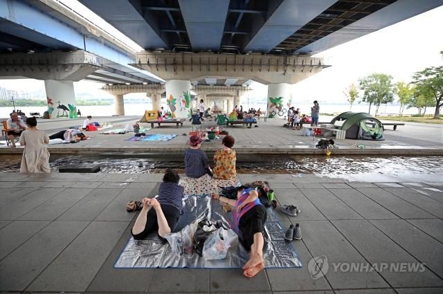 덥고 습한 날씨가 다시 이어지는 20일 오후 서울 영등포구 마포대교 아래 여의도한강공원에서 시민들이 더위를 피하고 있다.