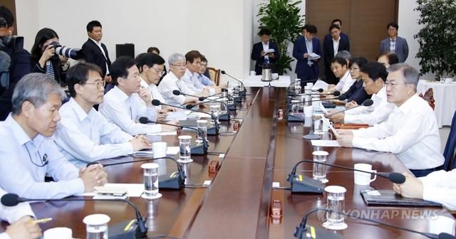 문재인 대통령이 20일 오후 청와대 여민관에서 열린 수석ㆍ보좌관회의를 주재하고 있다.