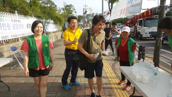 경기 구리시 교문2동 새마을지도자협의회와 새마을부녀회는 지난 20일 출근 시간대인 오전 6~8시 구리경찰서 앞 버스 승강장에서 출근하는 시민들에게 간식을 제공하는 봉사활동을 진행했다. 사진은 새마을회 회원들이 시민들에게 간식을 전달하는 모습. (사진제공=구리시청)