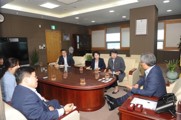 인천 연수구의회는 최근 워터트런트 사업 논의를 위해 유관기관인 인천경제자유구역청을 방문했다. 사진은 김성해 의장, 기형서·조민경 의원 등이 김진용 청장 등 관계자들과 만나 워터트런트 사업 추진과 관련해 다양한 의견을 나누고 있는 모습. (사진제공=연수구의회)