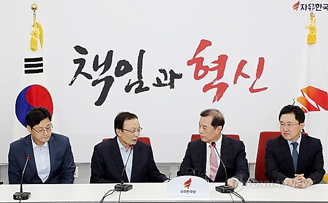 더불어민주당 이해찬 신임 대표가 27일 국회 본청 자유한국당 대표실을 예방해 김병준 비대위원장과 대화하고 있다. 이 대표는 이 자리에서 “당선 인사말에서 ‘5당 대표가 조건 없이 만나서 허심탄회하게 얘기를 좀 하자’고 제안했다”고 강조했다. 김 위원장은 이에 “민생경제를 살리는 데 있어선 여야가 있을 수 없다”면서 이 대표가 제안한 여야 5당 대표 회동에 대해선 “가능한 한 서로 협의할 것은 협의해야 한다. 다만 기본적인 경제정책에 있어 서로의 생각이 상당히 달라서 그런 부분에 있어서는 저희 나름대로 얘기를 할 기회가 있지 않겠나 한다”고 설명했다.