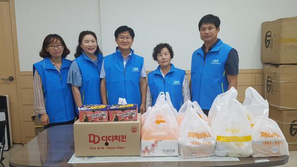 경기 포천시 일동면 지역사회보장협의체가 ‘행복나눔 쿠폰함’을 마련해 배달음식 쿠폰을 회수, 지역내 저소득 취약계층에 나눔을 실천하고 있다. 사진은 관계자들이 최근 쿠폰함을 회수해 마련한 음식을 저소득 취약계층에게 전달하기에 앞서 기념촬영을 하는 모습. (사진제공=포천시청)