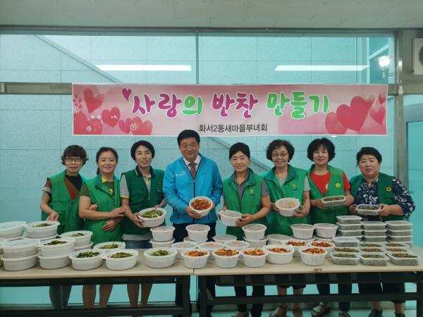 경기 수원시 팔달구 화서2동 새마을부녀회에서는 최근 지역내 저소득 노인을 위해 사랑의 반찬나눔 행사를 가졌다. 새마을부녀회원들은 이날 멸치고추조림과 열무김치, 불고기 등을 준비해 노인들에게 전달했다. 사진은 참여자들이 기념촬영을 하는 모습. (사진제공=팔달구청)