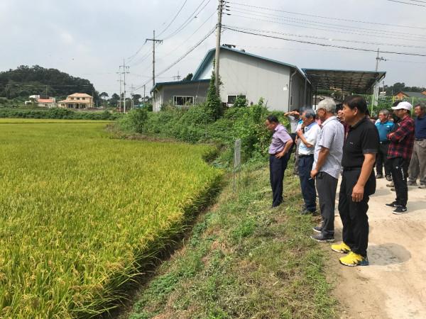 경기 여주시 농업기술센터는 30일 농업인과 관계자 60여명이 참여한 가운데 ‘2018년 작물환경분야 기술보급시범사업 평가회’를 개최했다. 사진은 평가회에 참석한 농업인과 관계자 등이 지역내 한 농가를 방문, 현장견학을 진행하고 있는 모습. (사진제공=여주시청)