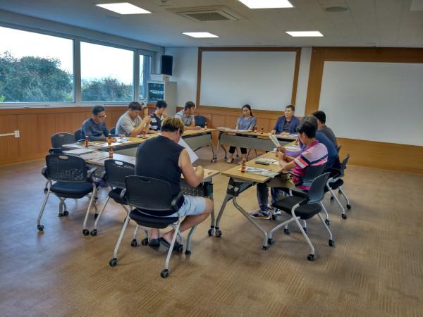 충남 아산시 신창면 청년농업인 회원들은 30일 신창면 행정복지센터에서 회원들의 역량강화를 위한 간담회를 개최했다. 지난 2월에 이어 두번째인 이번 간담회에 청년농업인 8명이 참석해 각자 분야의 영농기술 및 노하우를 공유했다. 사진은 참여자들이 이야기를 나누는 모습. (사진제공=아산시청)