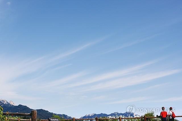 쾌청한 가을 하늘이 드리워진 휴일인 2일 오전 서울 종로구 낙산공원에서 사람들이 푸른 가을 하늘을 배경으로 여유를 만끽하고 있다.