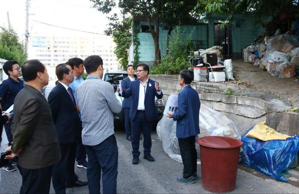 김정식 인천 미추홀구청장이 민선 7기 첫 현장방문을 시작했다. 김 구청장은 5일 숭의1·3동을 시작으로 오는 11월2일까지 21개동을 방문하게 된다. 사진은 숭의1·3동을 방문한 김 구청장이 관계자들과 이야기를 나누고 있는 모습. (사진제공=미추홀구청)