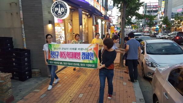 경기 수원시 권선구는 보육교직원, 청소년 선도위원 등 40여명과 함께 지난 5일 탑동 지역주민을 대상으로 ‘아동학대예방 캠페인’을 실시했다. 사진은 참여자들이 캠페인을 진행하는 모습.(사진제공=권선구청)