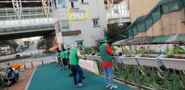 [아산=박명수 기자] 충남 아산시 온양2동 남·여 새마을지도자협의회가 지난 8일 온양온천역 중앙로 도로변을 중심으로 가을 꽃길 만들기에 나섰다.