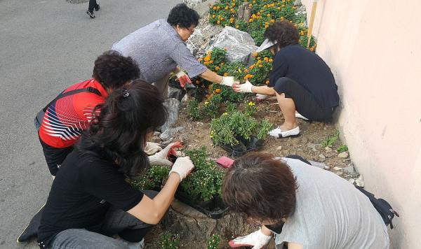 | ▲ 가을 초화를 식재하고 있는 주민들의 모습. (사진제공=인천 서구청) | ||