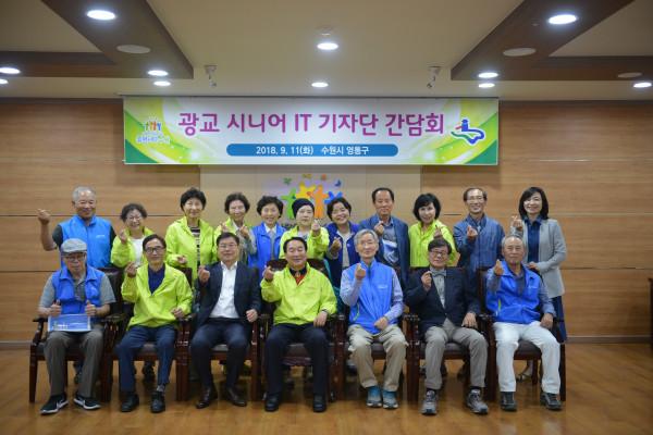 경기 수원시 영통구는 지난 11일 '광교 IT 기자단'과 구 관계자 등 20여명이 참석한 가운데 ‘광교 IT 기자단 간담회’를 개최했다. 사진은 간담회가 끝난 후 참여자들이 기념촬영을 하는 모습. (사진제공=영통구청)