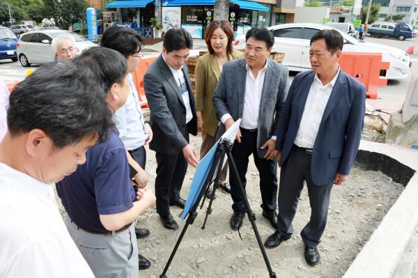 인천 계양구의회 자치도시위원회 소속 의원들이 최근 지역내 서운교 보도 확장공사, 목수천 악취개선 관로정비 공사현장 등을 방문해 현장 의정활동을 펼쳤다. 사진은 현장 관계자로부터 사업현황을 확인하는 의원들의 모습. (사진제공=계양구의회)