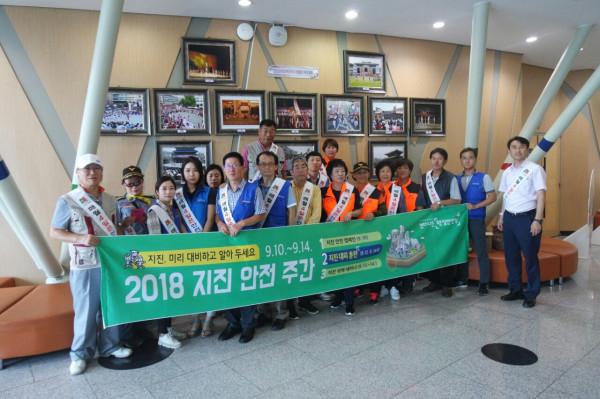 경기 안성시가 지난 10일 안성맞춤랜드에서 시청 안전총괄과 직원 및 지역자율방재단원, 여성의용소방대원 등이 참석한 가운데 ‘안전점검의 날 행사’를 실시했다. 사진은 캠페인에 참석한 관계자들이 기념촬영을 하는 모습. (사진제공=안성시청)