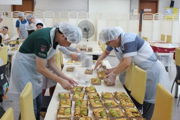 (재)경기 용인시자원봉사센터는 지난 15일 시청 직원식당에서 용인시 공무원 90여명이 참가한 가운데 ‘추석맞이 명절음식 만들기 행사’를 개최했다. 사진은 추석 음식을 만들고 있는 시 공무원들의 모습. (사진제공=용인시청)