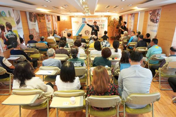 19일 유덕열 서울 동대문구청장이 다일천사병원 시설 입소자·주민 50여명을 대상으로 다일문화대학에서 ‘그래도 희망은 있다’라는 주제로 특별강연을 펼쳤다. 사진은 인문학 특강을 진행하고 있는 유 구청장의 모습. (사진제공=동대문구청)