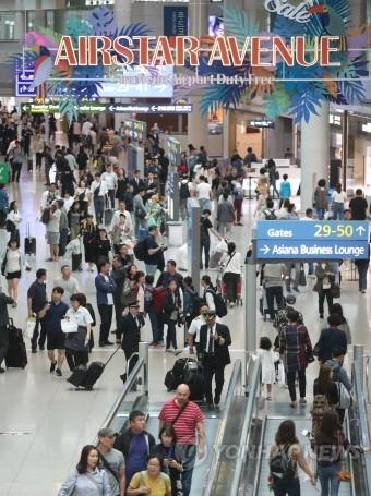 추석 연휴를 이틀 앞둔 20일 오전 인천국제공항 제1터미널 출국장 내 면세구역이 여행객들로 북적이고 있다.